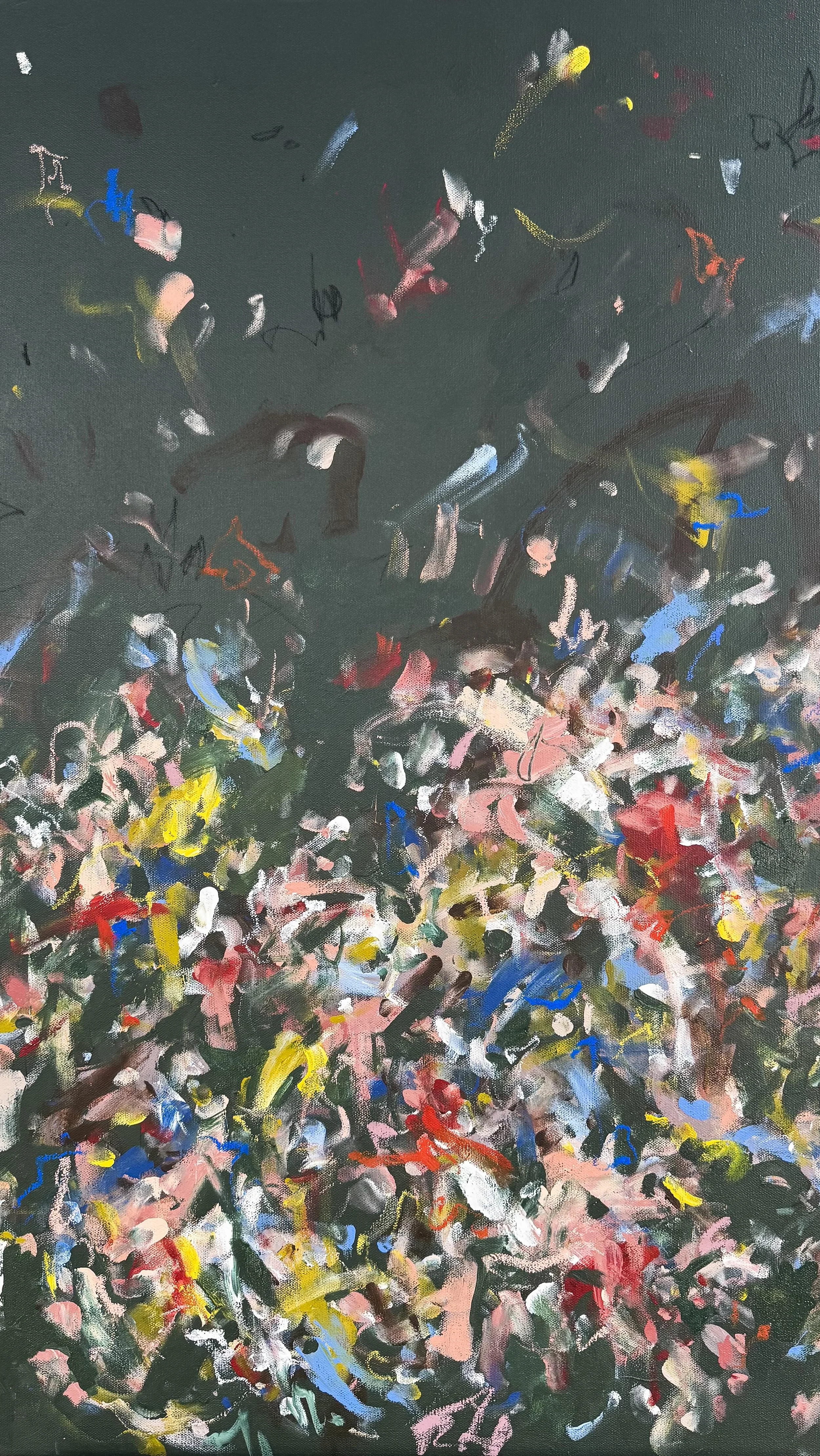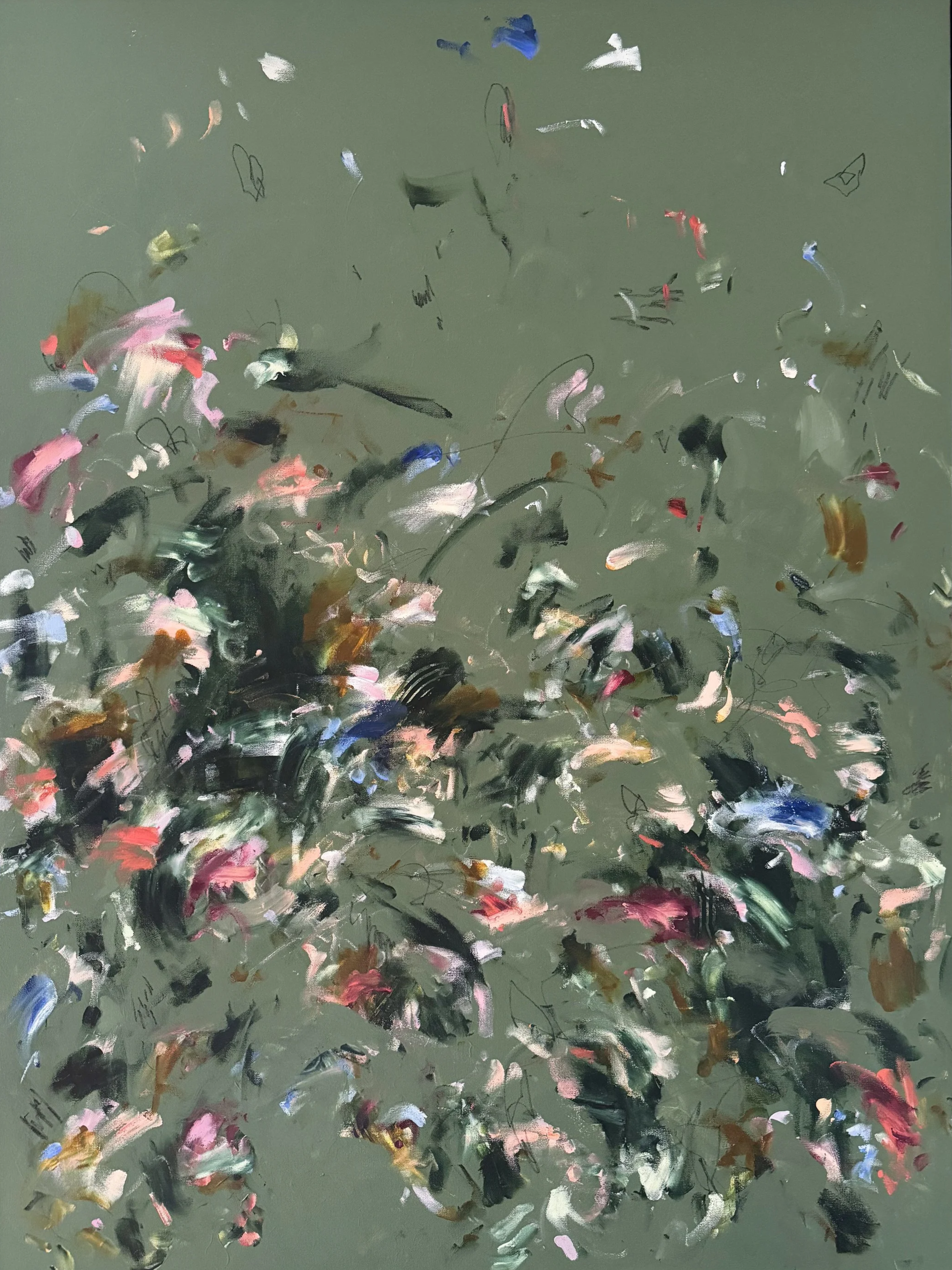 “Through painting I find the heart of the narratives that have driven me, consciously or otherwise, and like Hansel and Gretel following a trail of crumbs, I make my way back out of the woods to be greeted by the abstract forms, lines, and marks that map the journey to my healing.”
